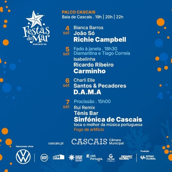 - 7 septembre : Rui Remix | Ténis Bar | Orchestre symphonique de Cascais (joue le meilleur de la musique portugaise)