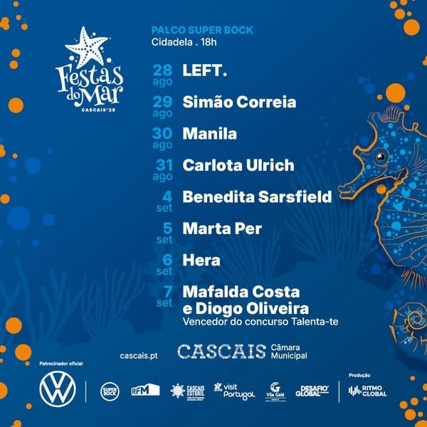 Cette année, les Festas do Mar (Fêtes de la Mer) mettent en place des scènes différentes pour accueillir cinq concerts par jour (dont un pour les enfants), du jeudi au dimanche.