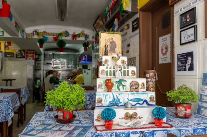 Suivant la tradition, les Trônes de Santo António descendent dans les rues durant les fêtes de Lisbonne. Ils sont exposés un peu partout, dans les vitrines, aux fenêtres, sur les balcons, devant les portes des maisons, dans les escaliers, etc…