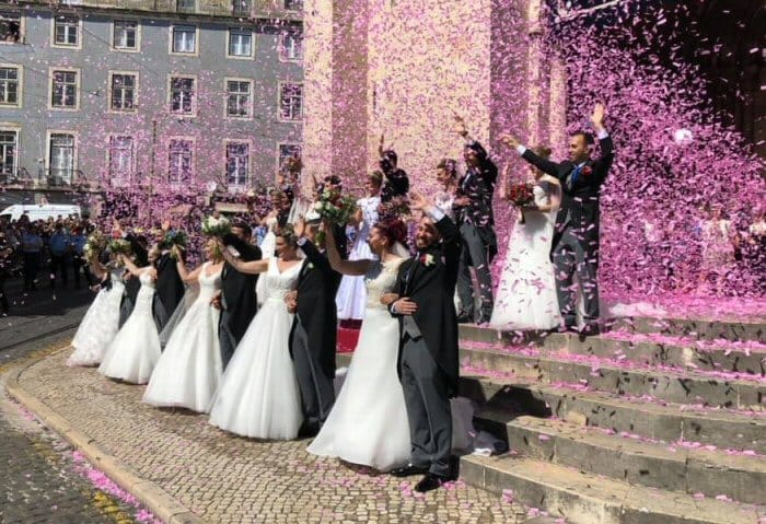 Les mariés de la Saint Antoine (16 couples cette année) se réuniront pour célébrer leurs mariages. La cérémonie civile aura lieu à 11h30 à l’Hôtel de Ville et le mariage catholique aura lieu à 14h à la Cathédrale de Lisbonne.