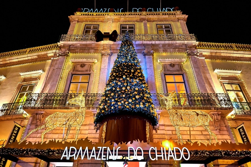 Les premières illuminations de Noël 2025 à Lisbonne couvriront la façade du grand magasin Armazéns dans le quartier historique du Chiado.